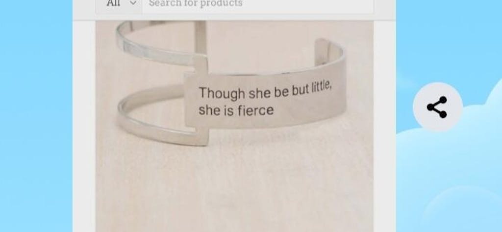 You know as well as anyone to never judge a book by its cover. No matter how you appear to others, you know deep down that you're determined, brave, and strong. Show the world your might with a statement cuff that's bold in both its style and message. Its geometric aesthetic puts a modern twist one of Shakespeare's most timeless quotes. This cuff has an open design that easily fits most wrist sizes and features small text that's ideal for quiet moments of inspiration.