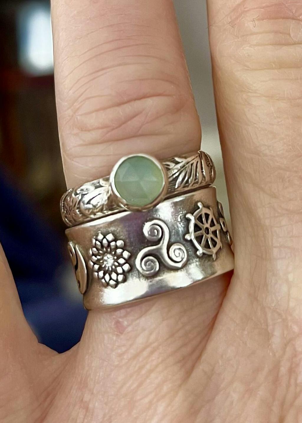 Sterling Silver Energy Flow Symbols Ring