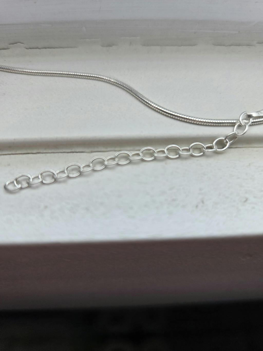 Transform any pendant into a necklace! Sterling silver chains available in different styles and lengths let you personalize your favorite charm or pendant. Choose from a snake chain in lengths of 16, 18 inches, or 22 inches. Or, select a curb chain in plain or beaded style: each style of curb chain is 16 inches long and has a 2-inch chain extension (making the chain 18 inches long total).Ā