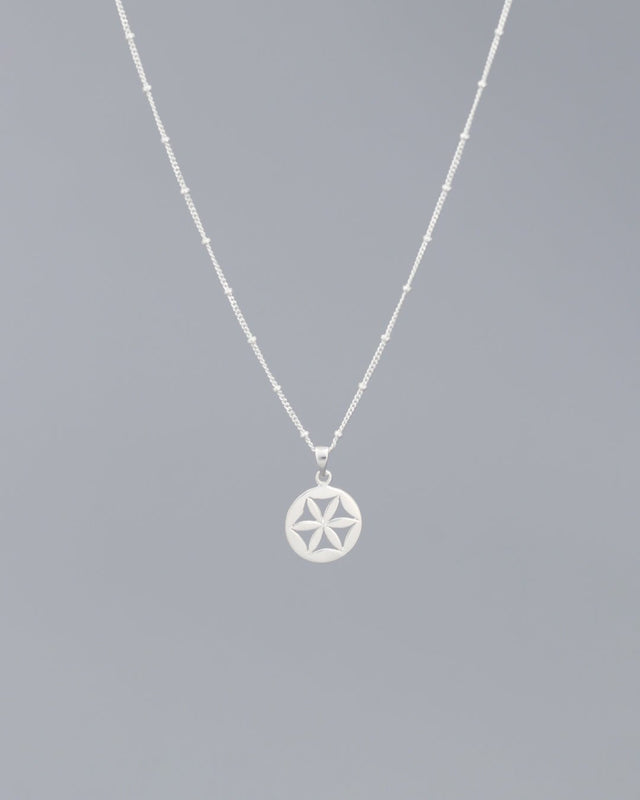 A single Flower of Life symbol floats at the center of this dainty sterling silver charm, suspended on a shimmering beaded chain. Subtle and symbolic, it's a delicate nod to ancient geometry and modern mindfulness