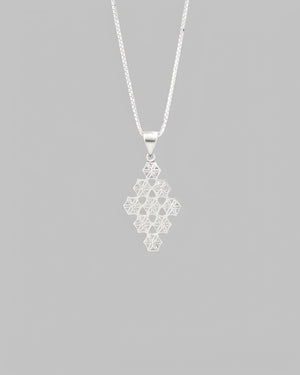 • Design:  Interlocking Flower of Life patterns arranged in a diamond-shaped pendant