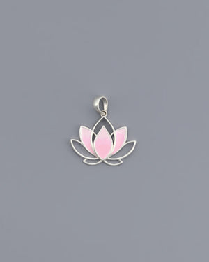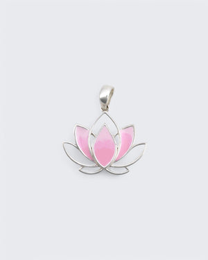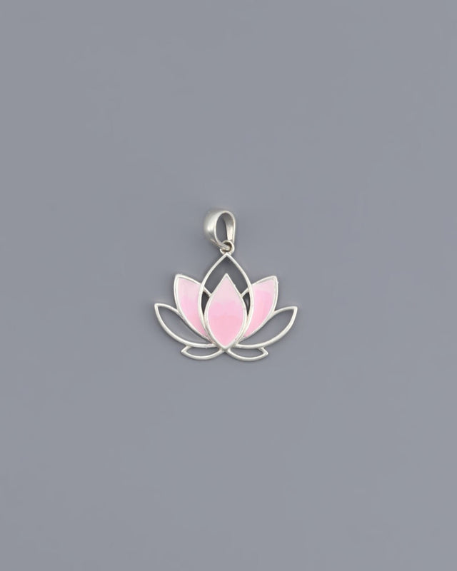 Pink Enamel Lotus Sterling Silver Pendant