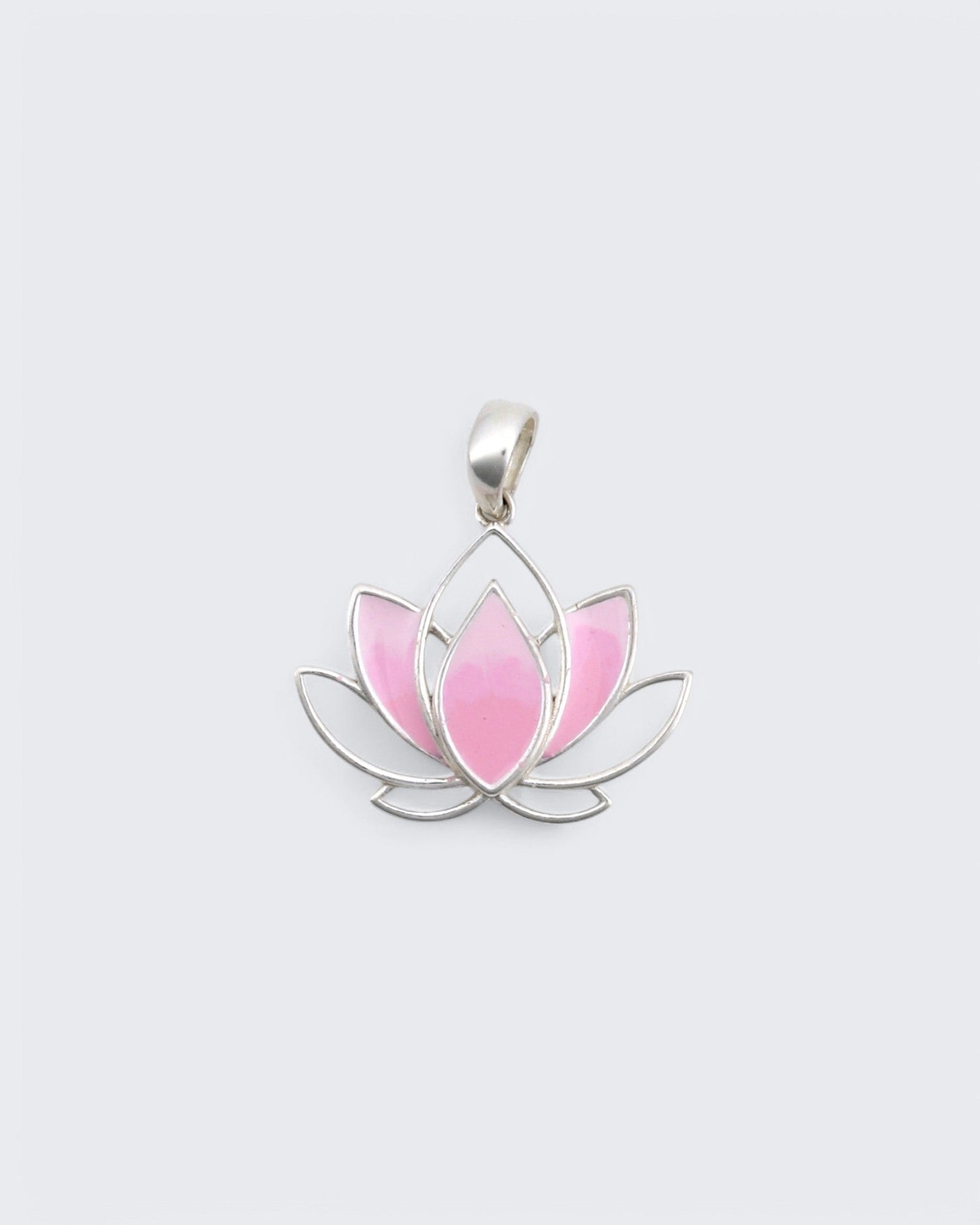 • Design: Sterling silver lotus outlined in gentle curves with soft pink enamel petals.