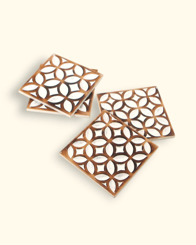 - Sold as a set of 4 coasters depicting two variations of the pattern