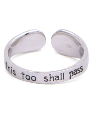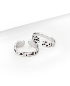 Carry a timeless reminder of resilience with the “This Too Shall Pass” Sterling Silver Ring. Engraved with a mantra of impermanence, it encourages you to cherish life’s joys and endure its challenges with grace. The inscription is paired with delicate dandelion artwork—a symbol of fleeting beauty and the natural cycles of change.