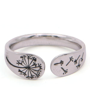 Dandelions symbolize transience and letting go, reinforcing the ring’s theme of resilience and renewal.