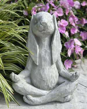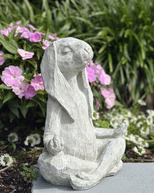 • Design: Meditating bunny in classic lotus pose with textured detail and a rustic, weathered finish