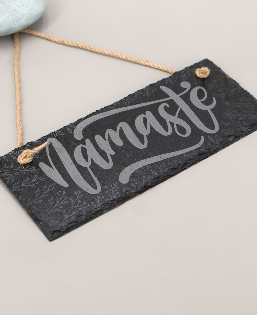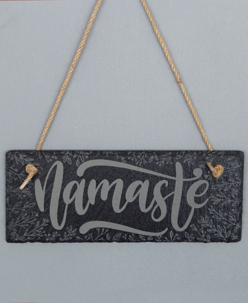 Embrace life with a sense of reverence. This sleek natural slate wall hanging is engraved with the word, "Namaste," an ancient greeting that translates to, "The divine within me honors the divine within you".