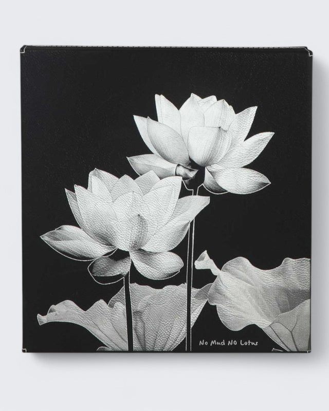 Elevate your space with this captivating Lotus Print Wall Art, intricately designed to inspire and uplift. Crafted on premium black vegan leather, the silver iridescent engraving of a lotus blooms radiantly, complemented by the empowering mantra "No Mud, No Lotus." This piece is not just decor but a daily reminder of resilience and beauty emerging from adversity.