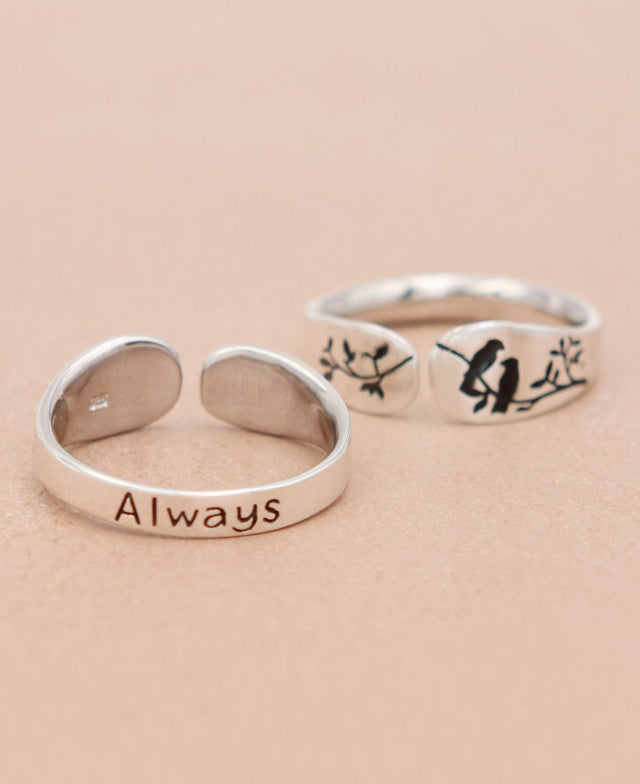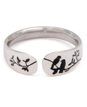 Forever is a promise when you wear this special ring. With two little birds perched side by side, it's a stirring token of the unbreakable bond you have with a special someone, whether it's a spouse, friend, or family member: even if they're far away, this ring keeps their spirit close at hand. Crafted with an adjustable design, this ring's band measures 0.25 inches at its widest point. Made of sterling silver.