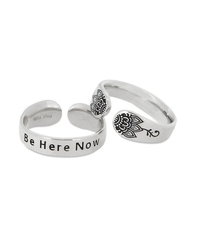 Be Here Now Adjustable Inspirational Sterling Silver Ring