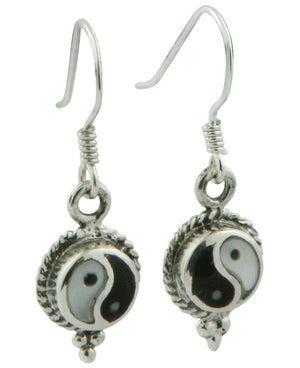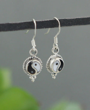 Dainty Yin Yang Earrings with Black Onyx and Mother of Pearl