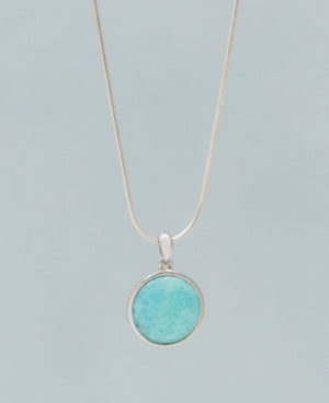 Staying on the bright side isn’t always easy. Neither is staying calm. Thankfully, there’s amazonite gemstone. Famously known as the “Hope Stone” this gem's gentle vibrations soothe your soul and fill you with optimism. Simply designed for a minimalist look, our amazonite pendant is a source of peace and positivity you can wear all day. On the reverse, you’ll find the stone’s two defining qualities-a little reminder to keep calm and keep your head high.