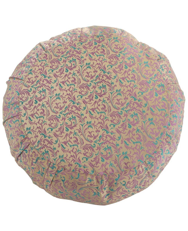 - Brocade zafu cushion with pastel floral cover