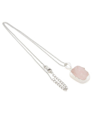 Sterling Silver and Raw Cut Rose Quartz Crystal Necklace