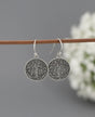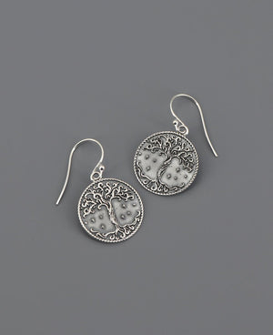 The delicate and detailed embossing on each earring brings the tree of life to life, adding a touch of intricacy and sophistication. These elegant earrings showcase the tree of life embossed on a circular disc, a motif rich in meaning and history, often associated with growth, strength, and connection to all forms of life.