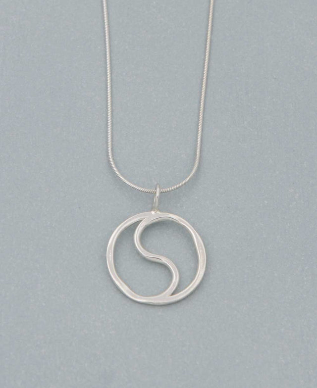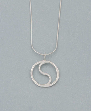 This sterling silver pendant inspires balance and harmony. The piece is textured and intentionally finished with lovely imperfections, imbuing the yin yang symbol with an organic quality. Pendant measures 0.875 inches wide.