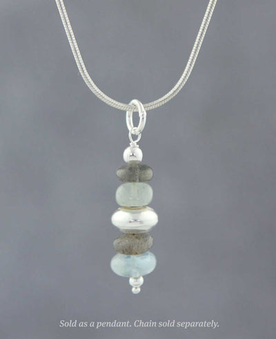 Zen Cairn Pendant, Labradorite and Aquamarine